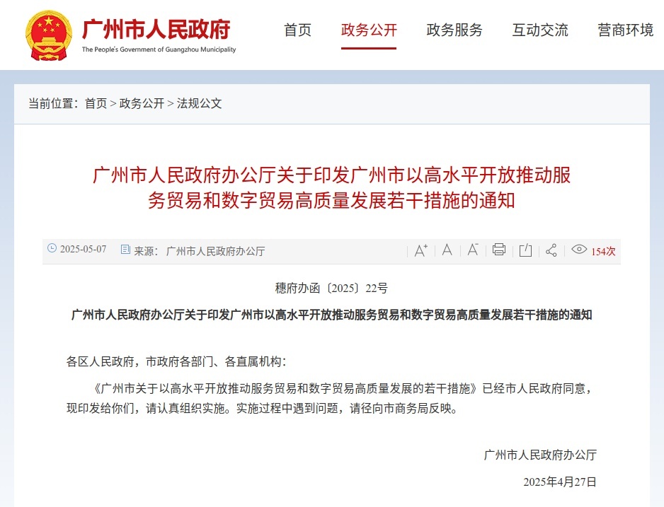为加快培育外贸发展新动能,广州出台“服务贸易和数字贸易22条”,从稳步扩大制度型开放、促进资源要素跨境高效便捷流动、推进服务贸易重点领域创新发展、推动数字贸易改革创新发展、支持市场主体拓展国际业务、完善高质量发展支持体系等方面提出22条政策措施,进一步深化服务贸易和数字贸易领域改革、开放、创新、合作,更好支撑广州“12218”现代化产业体系建设。