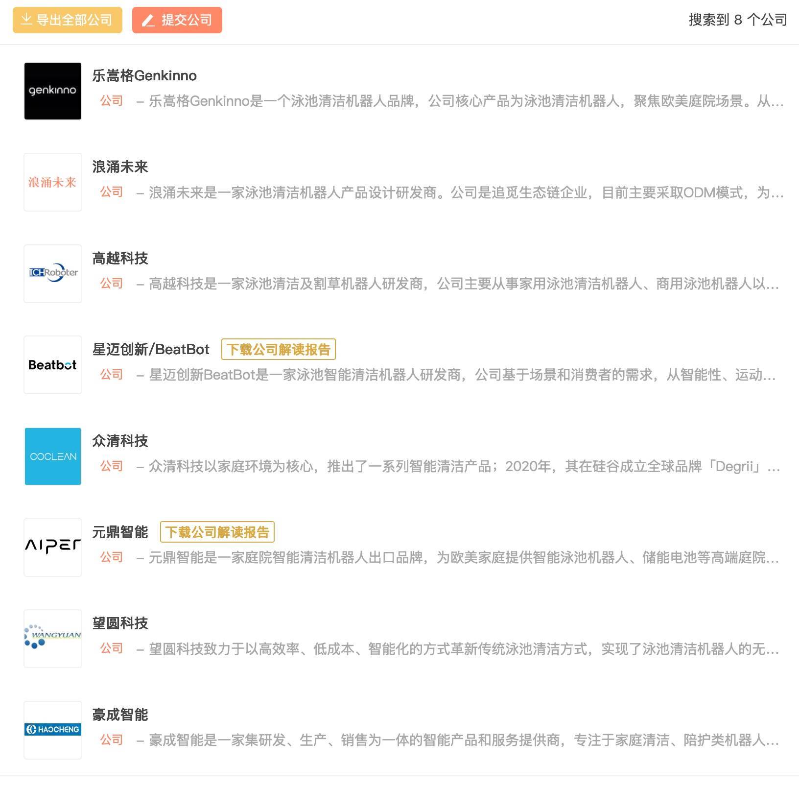 换言之,尽管自身成长飞速,星迈创新不只面临Husqvarna、Bosch、John Deere等国际品牌的防守,也在面临越来越多中国大公司和创新企业的三面夹击。事实上,泳池机器人前两年就已迎来了创业小浪潮。当前,IT桔子共收录包括星迈创新在内的8家泳池机器人公司。